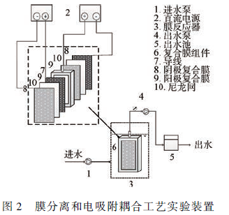 膜分離技術(shù)是解決電吸附工藝中的顆粒污染物污染問題的有效手段 ,然而單獨(dú)采用膜分離(如微濾和超濾等)進(jìn)行預(yù)處理將大大增加系統(tǒng)的復(fù)雜性以及處理成本。將膜分離與電吸附進(jìn)行有機(jī)耦合,實(shí)現(xiàn)膜分離與電吸附的高度集成,是提升電吸附去除工藝技術(shù)經(jīng)濟(jì)性能的有效技術(shù)手段。此外,膜分離與電吸附的耦合能夠同步實(shí)現(xiàn)廢水的凈化分離(顆粒態(tài)、膠體態(tài)以及少量大分子量的溶解性有機(jī)物)和金屬離子吸附去除,是具有前景的工藝技術(shù)。