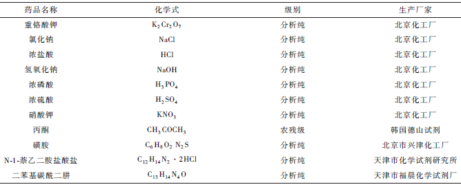 Cr(Ⅵ)儲備液:將2. 829 g 干燥的K2 Cr2 O7 溶于1 L 去離子水中,配成1 000 mg·L - 1 的標準儲備液,放到棕色試劑瓶避光保存于4 ℃ 的冰箱中。