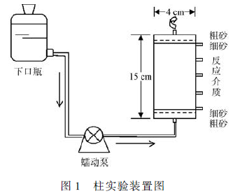 鐵屑(ETI-CC-1004,Connelly-GPM Inc. ,U. S. ):鐵含量、粒徑、比表面積、密度分別為96. 28% 、0. 25 ~2. 0 mm、1. 8 m2 ·g - 1 、和6. 43 g·cm - 3 ,篩分數為20 ~ 40 目。石英砂:粒徑0. 5 ~ 1 mm,粗砂粒徑1 mm,細沙粒徑0. 5 mm。活性炭:粒徑0. 5 mm。