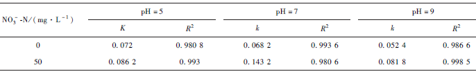 2. 1. 2 硝酸鹽存在時鐵屑去除Cr( Ⅵ) 的動力學擬合