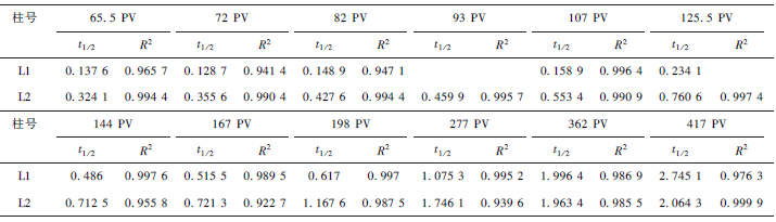 表4 兩個柱子不同孔隙體積時的半衰期( t1 / 2 )