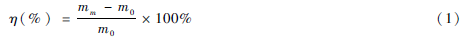 式中:m0為原PAN纖維的質量(g) ;mm為改性后纖維的質量(g)。