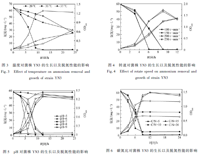 1. 4. 1 單因素實驗研究不同培養條件對菌株YN3 異養硝化的影響