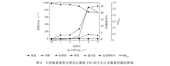 2. 2. 6 菌株YN3 的氨氮濃度耐受性