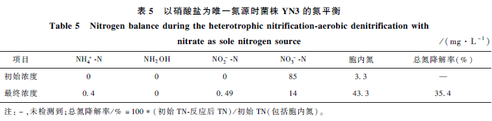 2. 5 菌株YN3 硝化-反硝化過程氮平衡分析