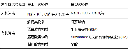 針對納濾膜深度處理二級生化出水產生的膜污染,國內外學者多采用模型污染物研究污染物與納濾膜之間的相互作用.常用模型物質如表 2所示.