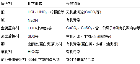 表 6 納濾膜污染常用化學清洗劑及其作用