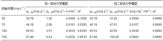 對于GEC對CR的吸附過程,本研究采用偽一級動力學方程(2)和偽二級動力學方程(3)(Li et al.,2013)進行擬合分析.