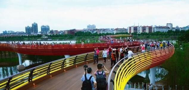 人與自然相和諧,尤其注重功能設施的景觀性,由他創意的人行景觀橋連接江北南及燕尾洲,時分時合、時而盤亙于兩江之上,時而回旋在濕地林中,兼具通行、景觀和美化城市景觀等多種功能,一橋架“活”了整個燕尾洲,再比如建立燕尾洲濕地保育區,引入梯田式防汛提等,都讓人耳目一新。