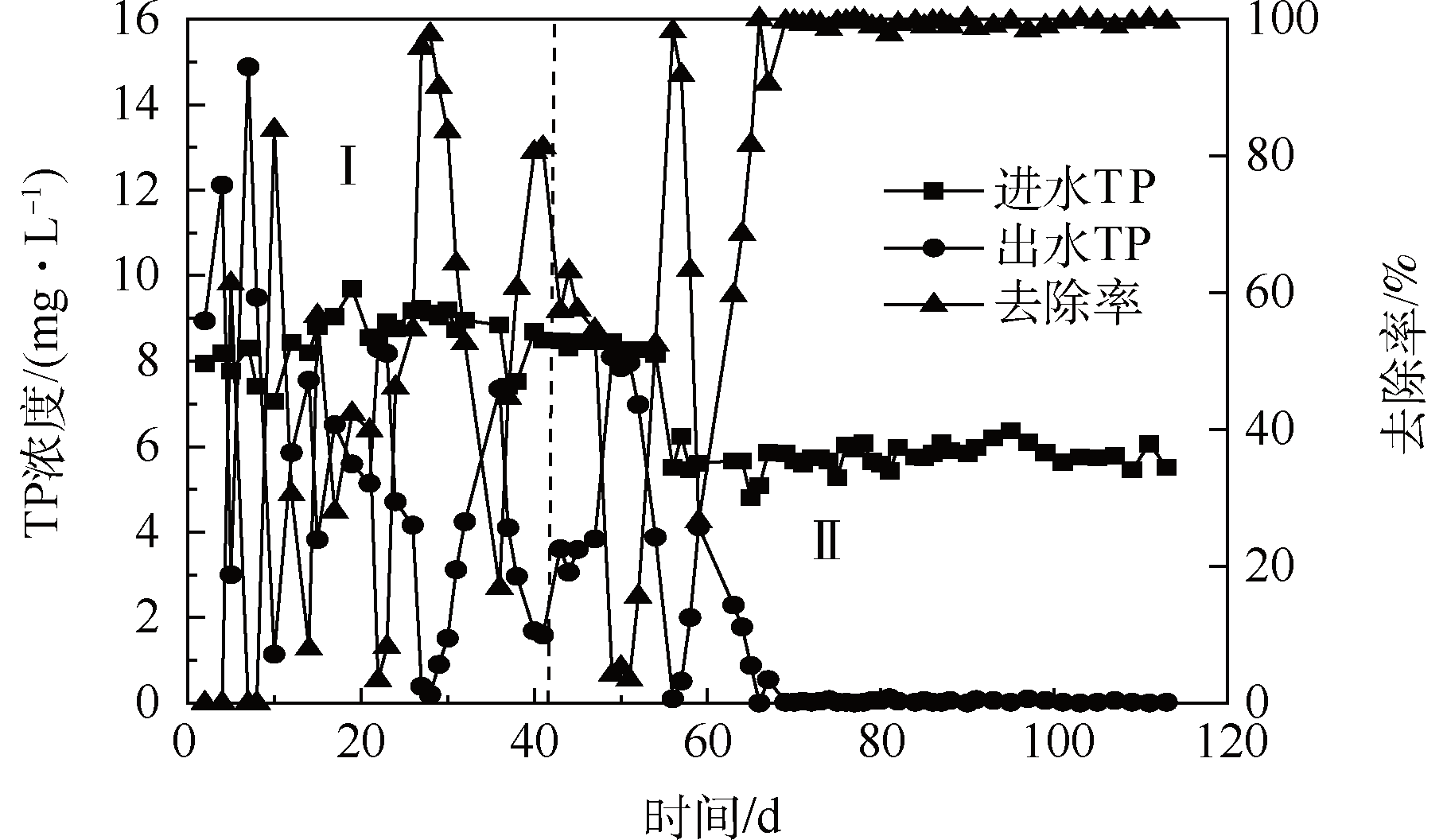 圖5 階段I、階段II TP濃度及其去除率隨時間的變化