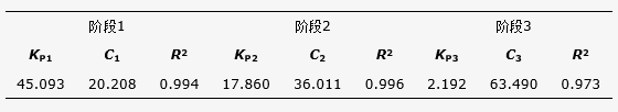 表2 顆粒內(nèi)擴散模型對鋯改性鋁氧化物對磷的吸附動力學擬合參數(shù)