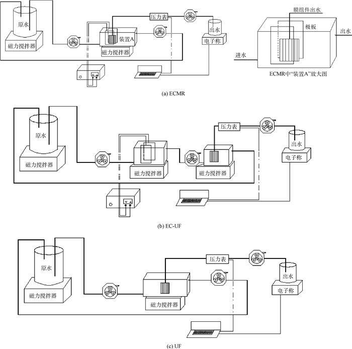圖1 ECMR、EC-UF和UF實驗裝置示意圖