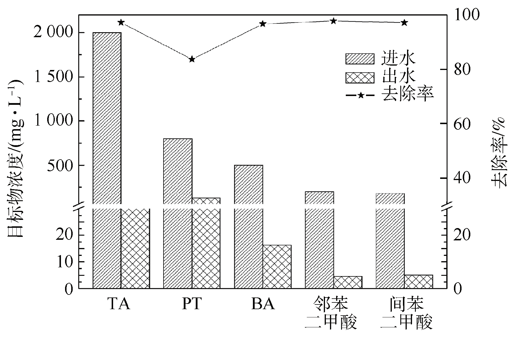 精對苯二甲酸(PTA)通常被用在薄膜、增塑劑和聚酯類材料等的生產中,是我國重要的有機原材料。隨著我國PTA產業規模不斷擴大,PTA廢水的排放量越來越多,由于PTA廢水主要污染物為芳香類化合物(對苯二甲酸(TA)、甲基苯甲酸(PT)和苯甲酸(BA)等),一旦進入環境,將會造成嚴重污染。此外,如果該廢水得不到切實有效處理,必將成為各個企業的發展“瓶頸”。因此,關于PTA廢水的處理研究受到越來越多的關注。PTA廢水具有有機濃度高,水質組成復雜、可生化性差、具有一定毒性等特點,這也是研究的難點。