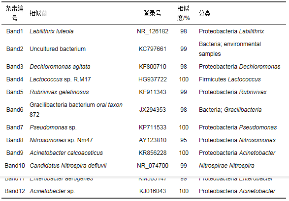 表 2 硝化濾池DGGE凝膠條帶回收序列分析結(jié)果