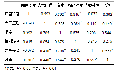 表 3 細菌氣溶膠濃度與環(huán)境因素之間的皮爾森相關性1)