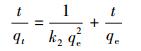 建立反應動力學模型可以從理論上分析該反應的反應速率及反應步驟, 并對其進行預測, 在實際工程應用中有重要意義.本文采用準一級動力學模型(式(1))、準二級動力學模型(式(2))、顆粒內擴散模型(式(3))3種反應動力學模型分別對實驗數據進行擬合.
