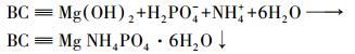 反應溶液的pH可以影響鳥糞石在溶液中的溶解度和溶液的過飽和狀態, 進而影響鳥糞石的生成.當反應溶液的pH值較低時, 鳥糞石的溶解度較高, 混合溶液中發生如下反應: