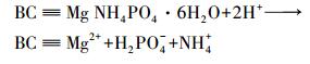 針對生物質炭對氮、磷的吸附機制早有研究, Mukherjee等(2013)指出, 生物質炭吸附磷酸鹽的機理是PO43-可以與生物質炭中的某些金屬陽離子通過靜電吸附或配體鍵合作用鍵合;而NH3-N的吸附則機制包括NH4+通過離子交換作用與生物炭表面的陽離子交換(Mukherjee et al., 2013)和物理吸附(如NH3-N在生物質炭空隙內部的嵌合)(Jansen et al., 1994).本文對生物質炭進行鎂改性后, 氮磷混合溶液中會發生如下反應:
