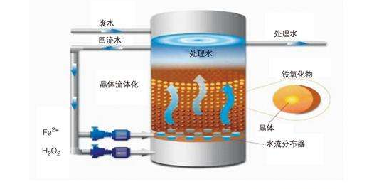 過氧化氫(H2O2)與二價鐵離子(Fe2+)的混合溶液把大分子氧化成小分子把小分子氧化成二氧化碳和水,同時FeSO4可以被氧化成3價鐵離子,有一定的絮凝的作用,3價鐵離子變成氫氧化鐵,有一定的網捕作用,從而達到處理水的目的。