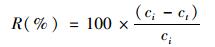 式中, ci代表初始氮濃度(mg·L-1), ct代表終態(tài)氮濃度(mg·L-1).