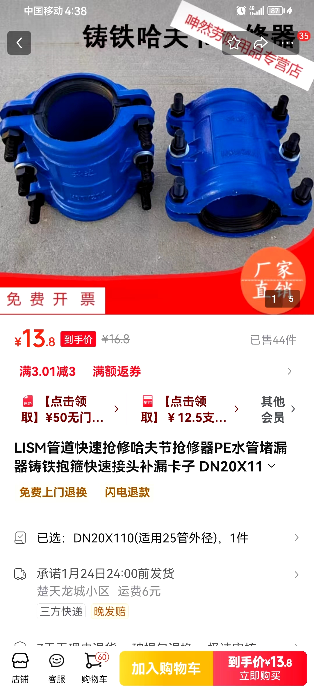 新洋豐中磷磷酸管道哈夫節堵漏器(外鋼板內膠套)一批詢價單大企業商機