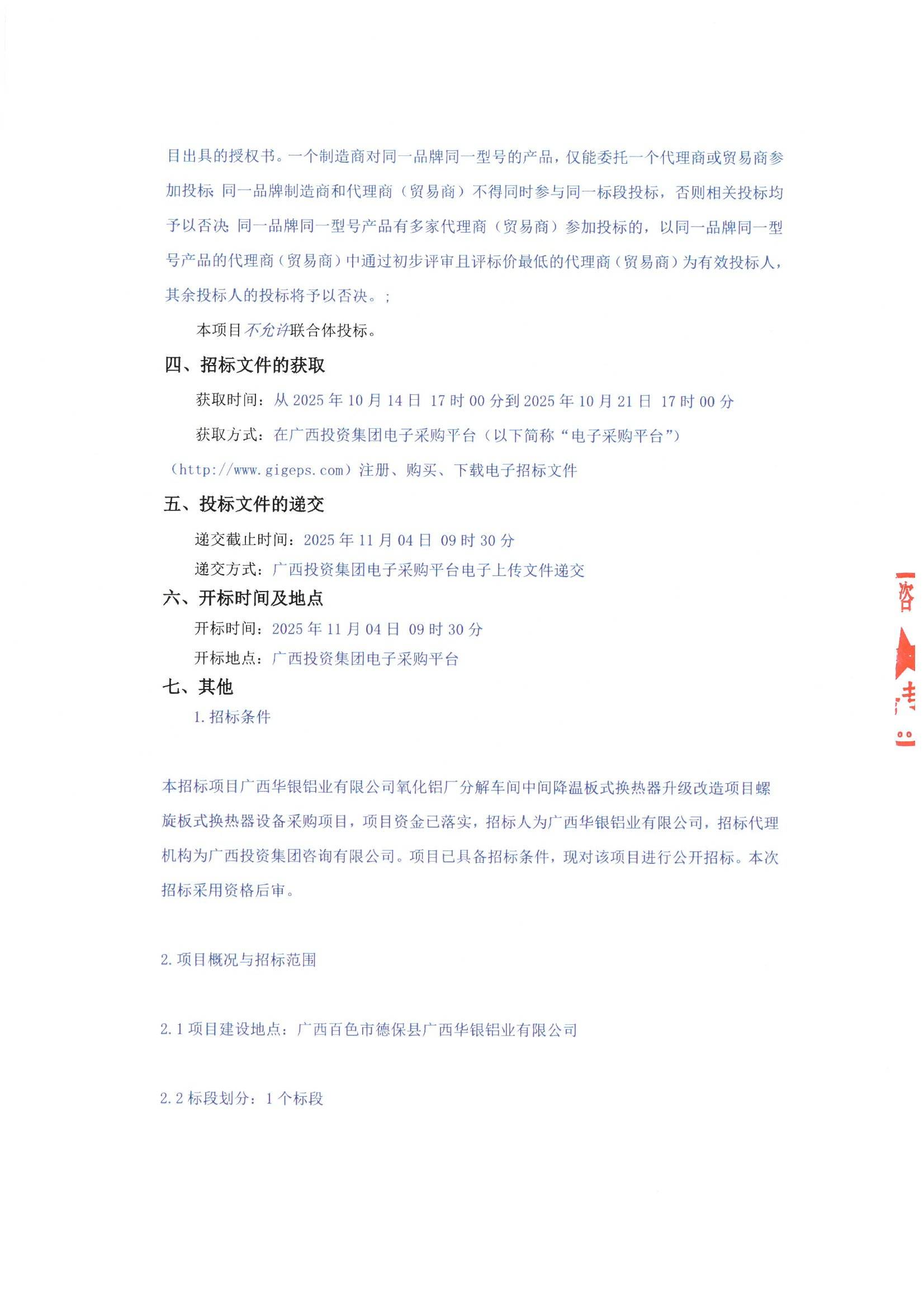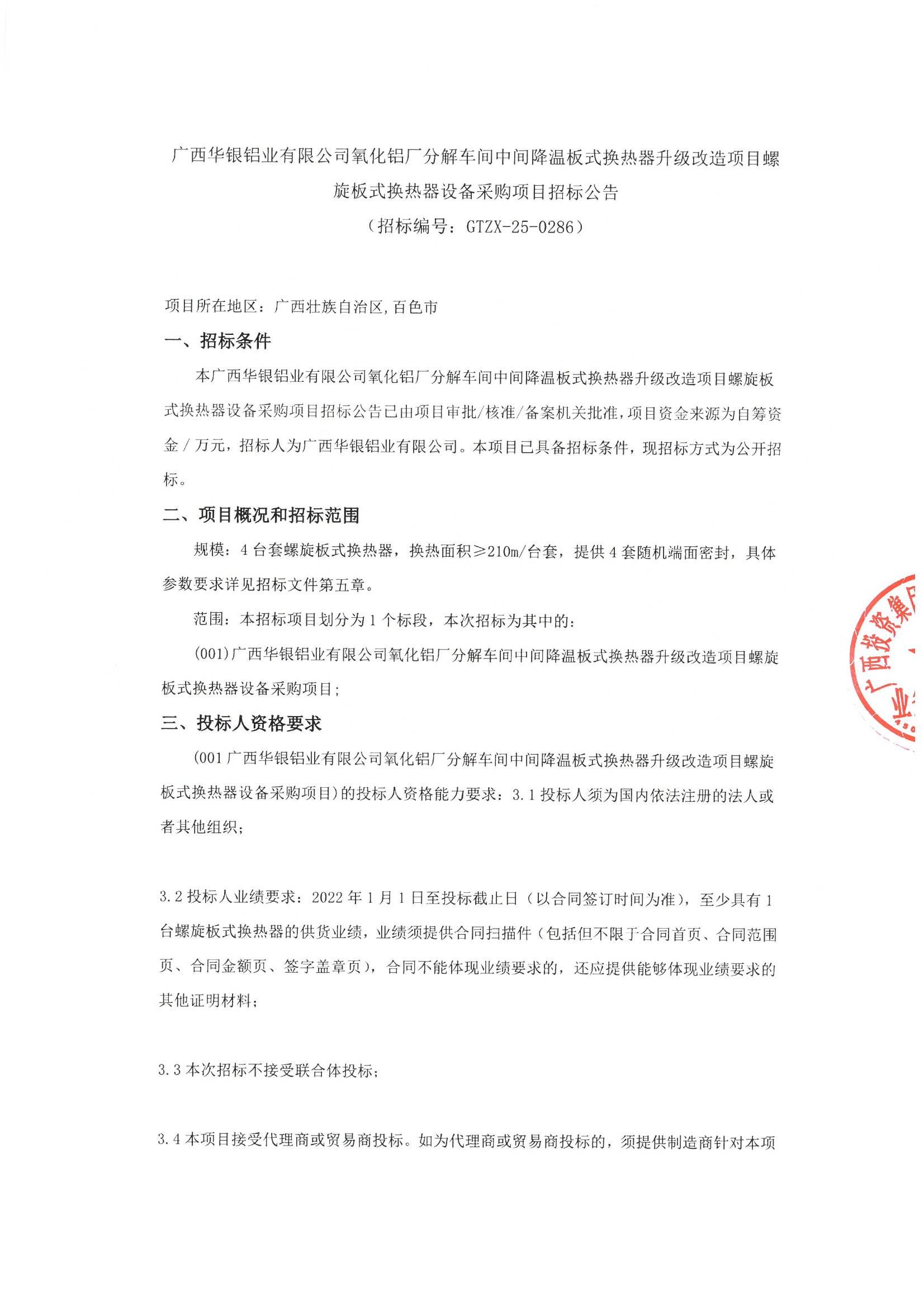 廣西華銀鋁業有限公司氧化鋁廠分解車間中間降溫板式換熱器升級改造項目螺旋板式換熱器設...