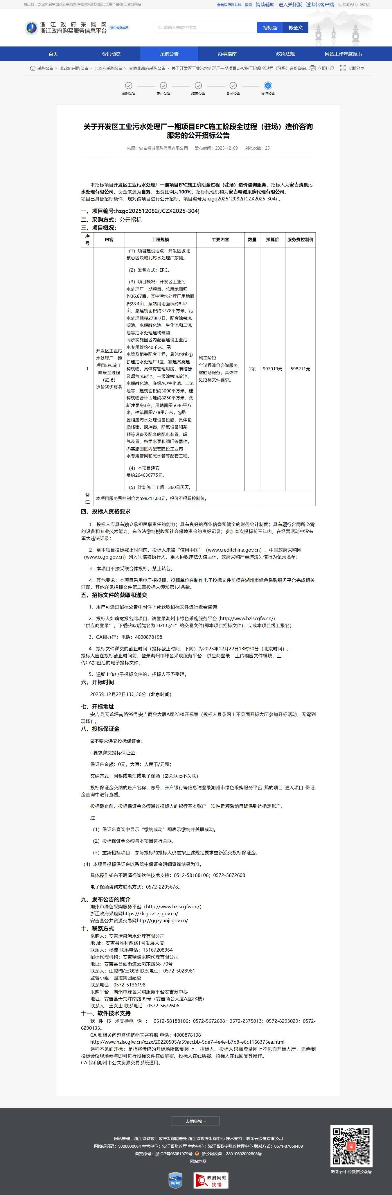 關于開發區工業污水處理廠一期項目EPC施工階段全過程(駐場)造價咨詢服務的公開招標公告