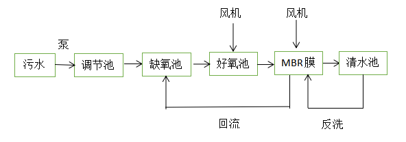 e.處理工藝采用A/0+MBR膜工藝(如圖)